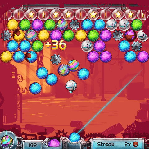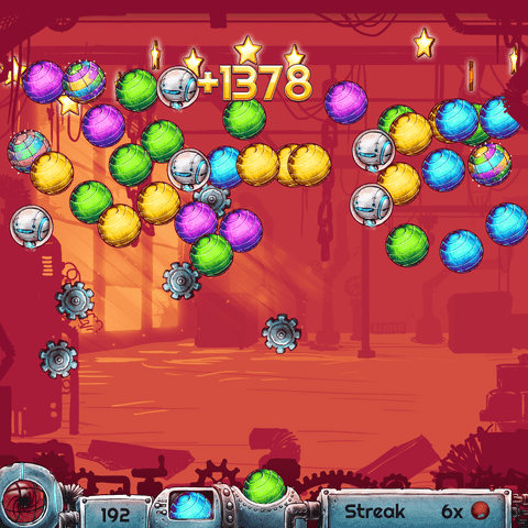 Platziere taktische Schüsse, um das alte Fabrikgebäude von Kugeln zu befreien. Mit Geschick kannst du Specials produzieren und noch schneller voran kommen.