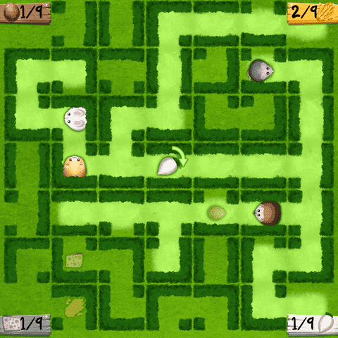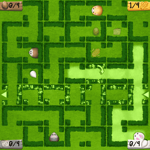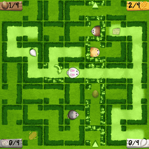 Crazy Garden is a strategic game for 2 to 4 players. Can you lead your little pet through the maze of hedges to its preferred food? Move hedges to create new pathes and block others. Feed your pet the fastest to win the game.