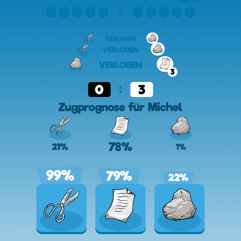 You know what to do when a decision has to be made. A round of Rock, Paper, Scissors! Decide, who has to take out the trash, do the dishes or gets the last coke with this game. But there is more! Long game series require tactic and psychology! Can you read the mind of your opponent?