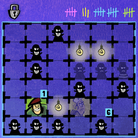 Der Mond scheint freundlich auf das alte, verlassene Fabrikgelände. Doch der Schein trügt. In dem verwinkelten Gebäude haben sich Gauner und Banditen versteckt. Einer nach dem anderen wird eingekreist und abgeführt. Gauner raus! Aus die Maus! Da heißt es um die Ecke denken, Scharfblick beweisen, kombinieren, ausschließen und die meisten Verstecke bei den Mitspieler:innen ausfindig machen!