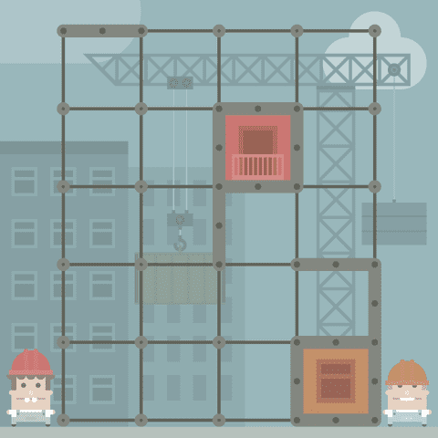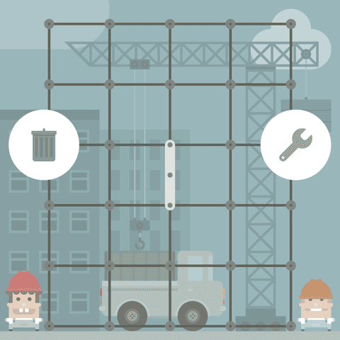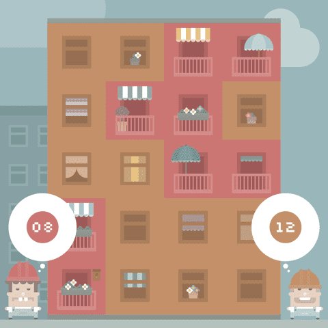 Mit jedem Zug darfst du eine Strebe montieren. Stellst du dabei ein Apartment fertig, darfst du gleich noch eine weitere Strebe verbauen. Das klassische Kästekästchen-Prinzip, das jeder aus der Schulzeit kennt, ist gerade auf kleiner Fläche strategischer als erwartet.