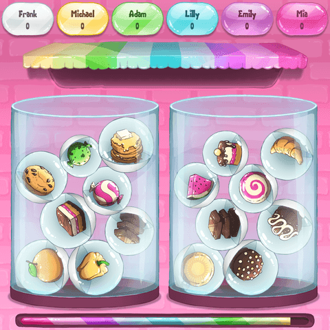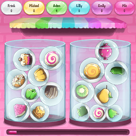 Ob gegen die Zeit oder synchron mit deinen Mitspieler:innen: untersuche die beiden Gläser mit Snacks und finde möglichst schnell den einen doppelten. Aber nicht nur einmal - so oft du kannst in 90 Sekunden.